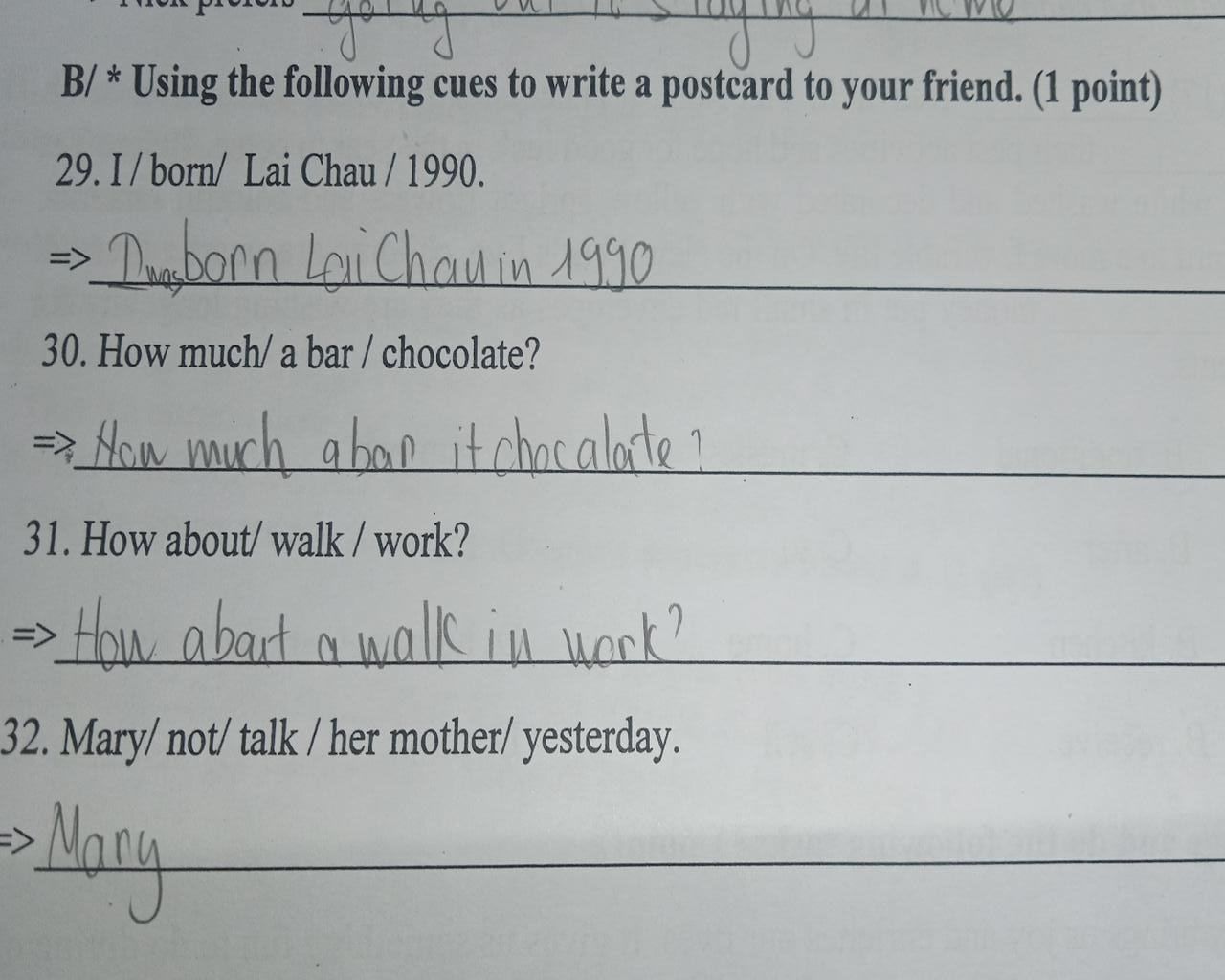 `32.` Mary / not / talk / her mother / yesterday.