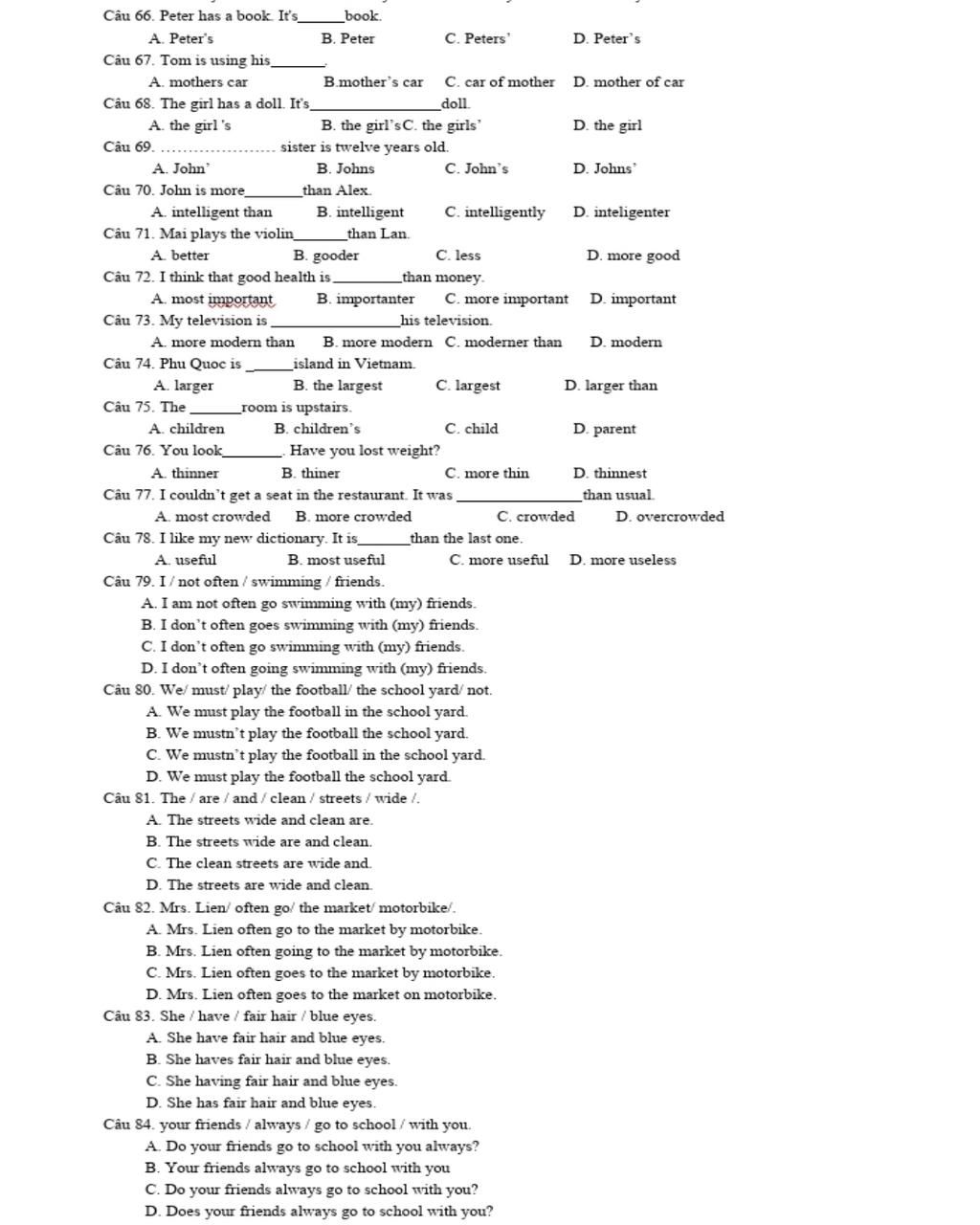 Câu 75. The