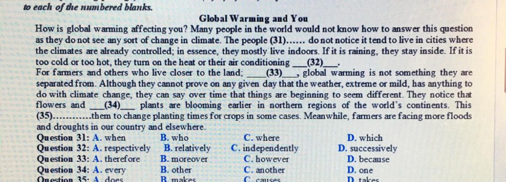 31. B who: đtqh chỉ người