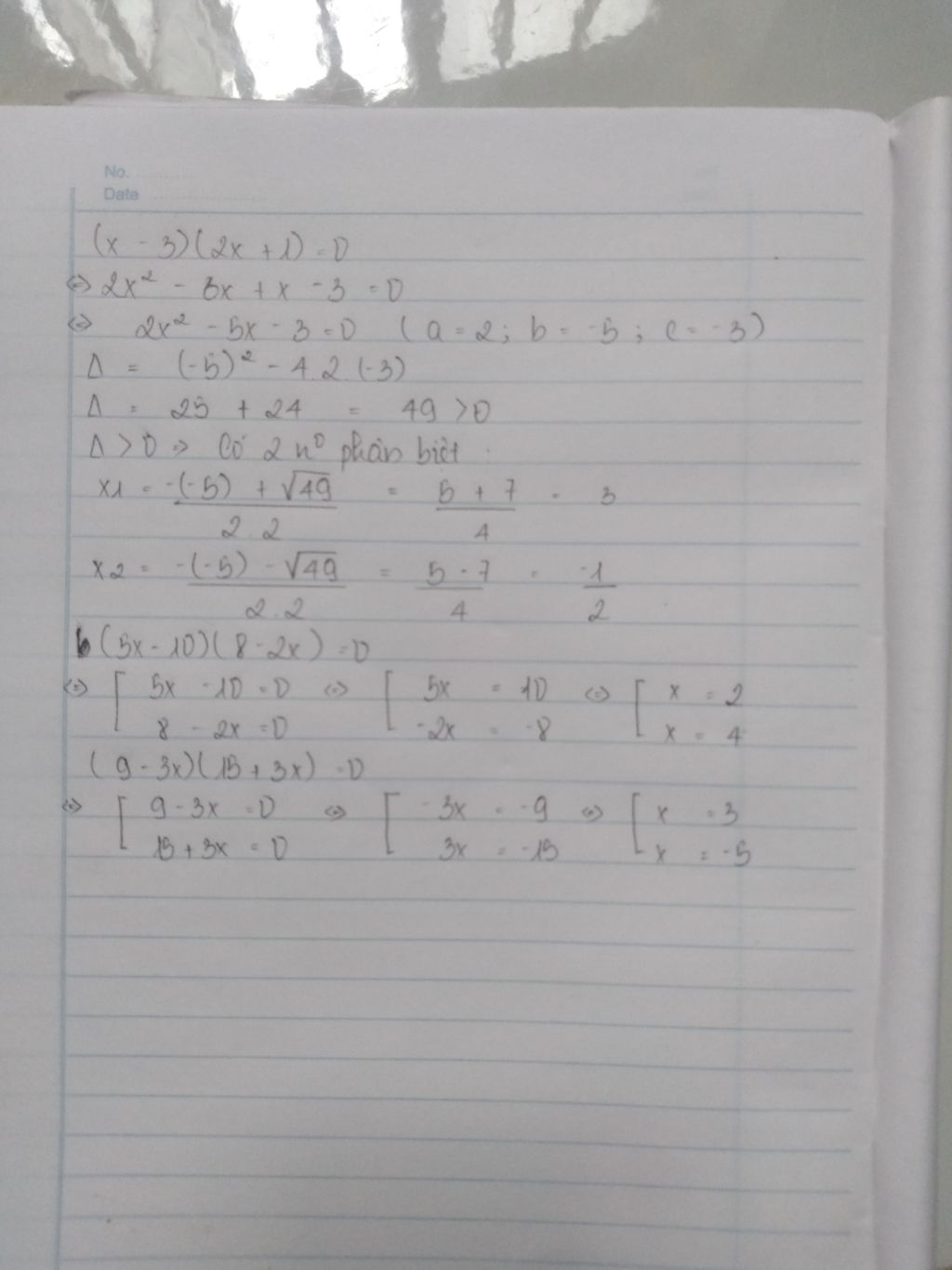→\(\left[ \begin{array}{l}x-3=0\\2x+1=0\end{array} \right.\)