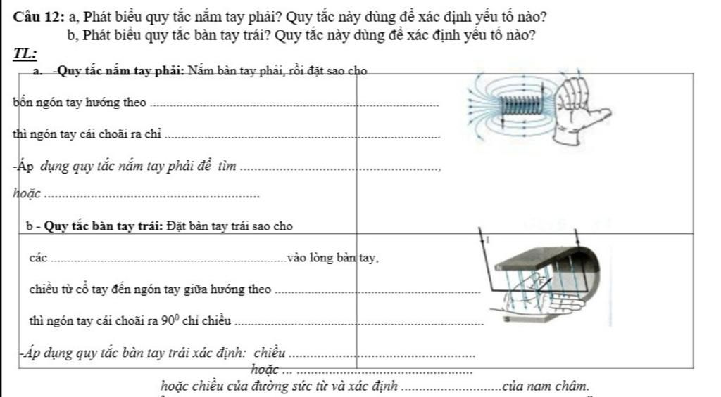 hoặc chiều của đường sức từ và xác định cực của nam châm.