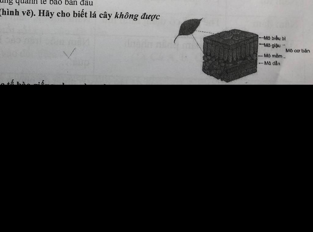 Trong hình vẽ trên, lá cây được tạo nên từ những loại mô sau: