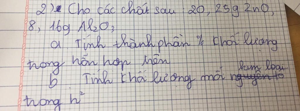 b) $n_{ZnO}$ = $\frac{20,25}{65+16}$ = 0,25 (mol)