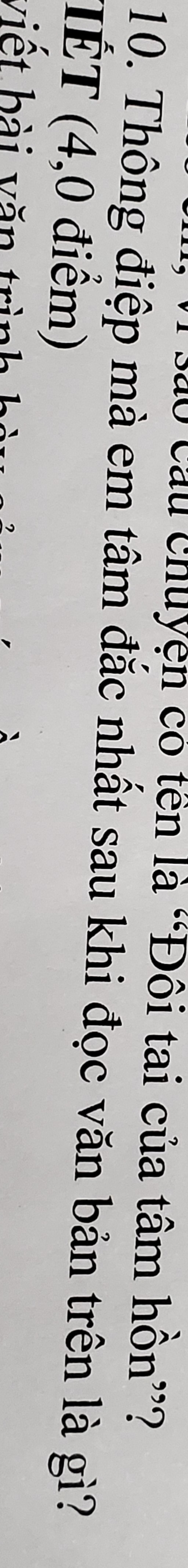 `#` Thông điệp mà em tâm đắc nhất sau khi đọc văn bản “Đôi tai tâm hồn” `:`