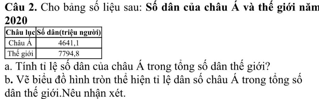 B.BẠN VẼ BIỄU ĐỒ CHÂU Á HƠI MỘT NỬA SO VỚI DÂN SỐ THẾ GIỚI NHÉ=)