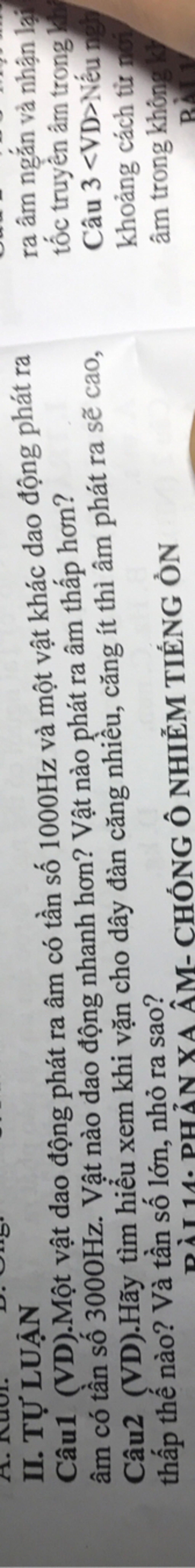 âm có tần số 3000Hz. Vật nào dao động nhanh hơn? Vật nào phát ra âm thấp hơn?