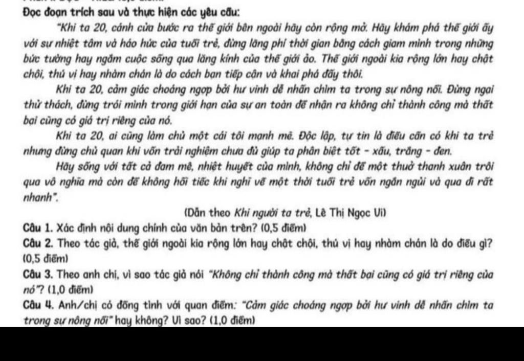 Câu 1: Những gias trị, trải nghiệm của tuổi 20.