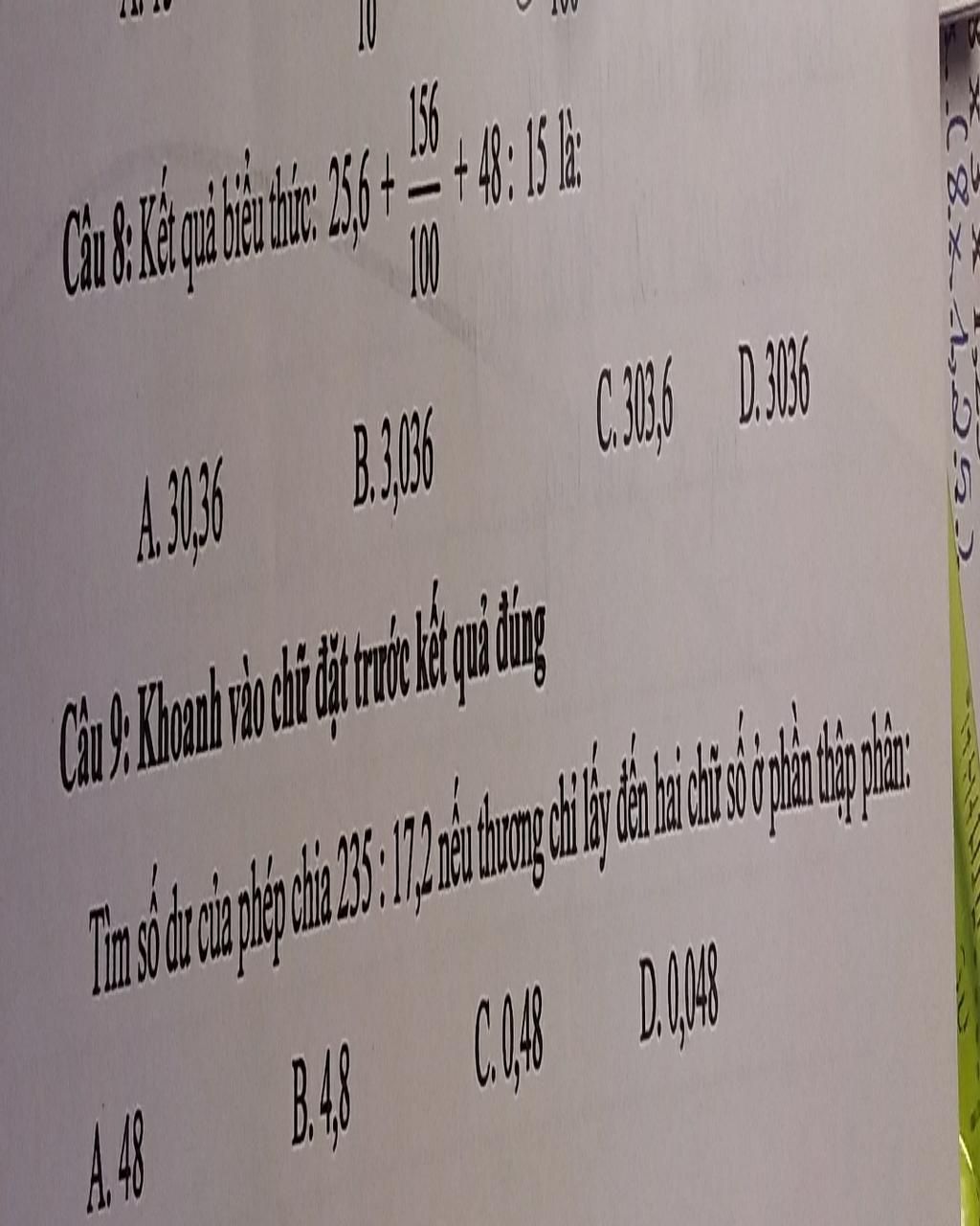 Vậy 235 : 17,2 =13,66 dư 0,048
