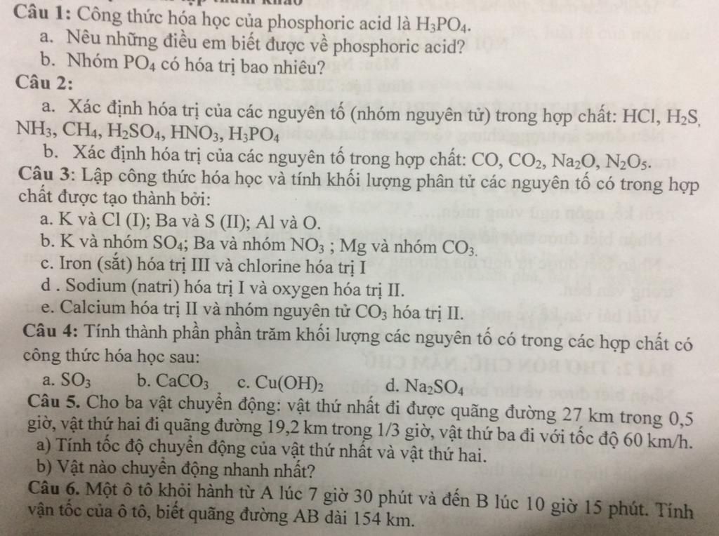 Câu 1: Công thức hóa học của phosphoric acid là H3PO4.