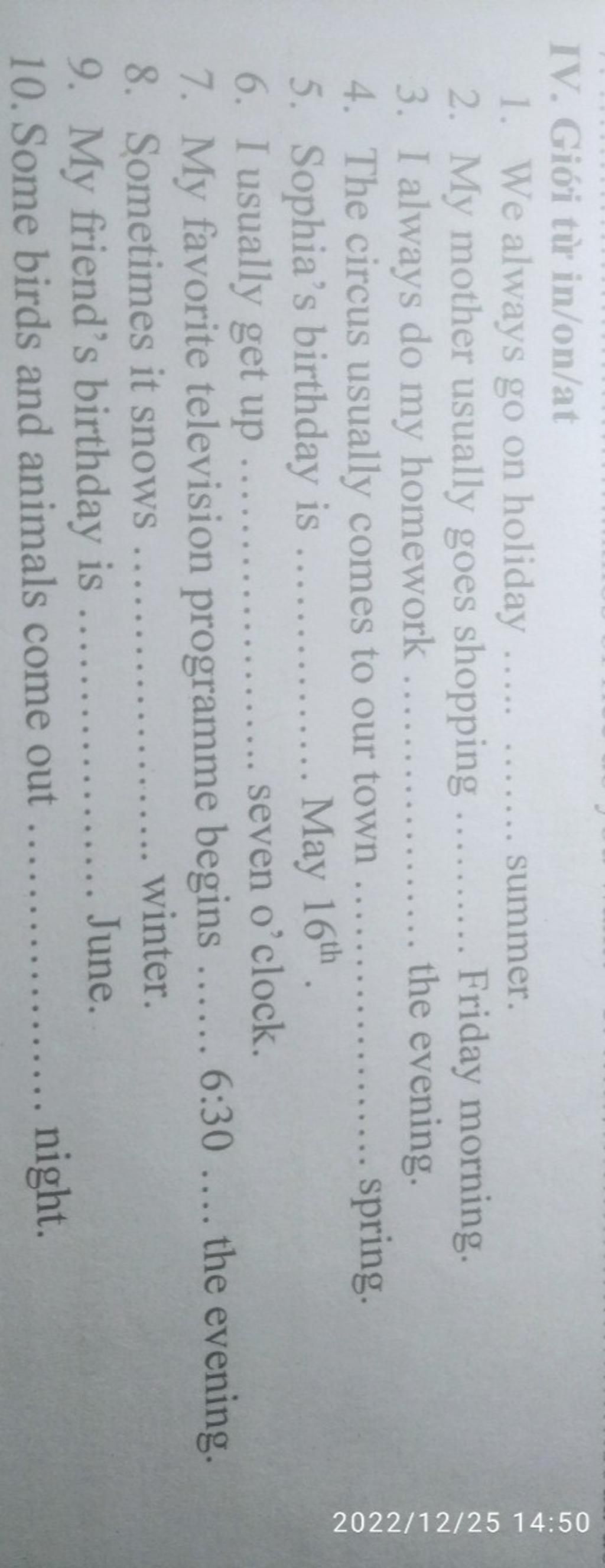 Giải thích: My favorite television programme begins at 6:30 in the evening.
