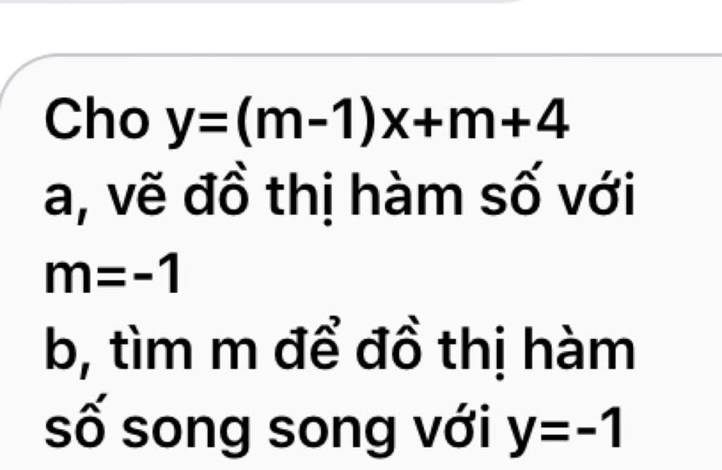 b.Để đồ thị hàm số $y=(m-1)x+m+4$ song song với đồ thị hàm số $y=-1$ hay $y=0\cdot x-1$