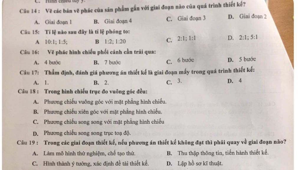Câu 14 : Vẽ các bản vẽ phác của sản phẩm gắn với giai đoạn nào của quá trình thiết kế?