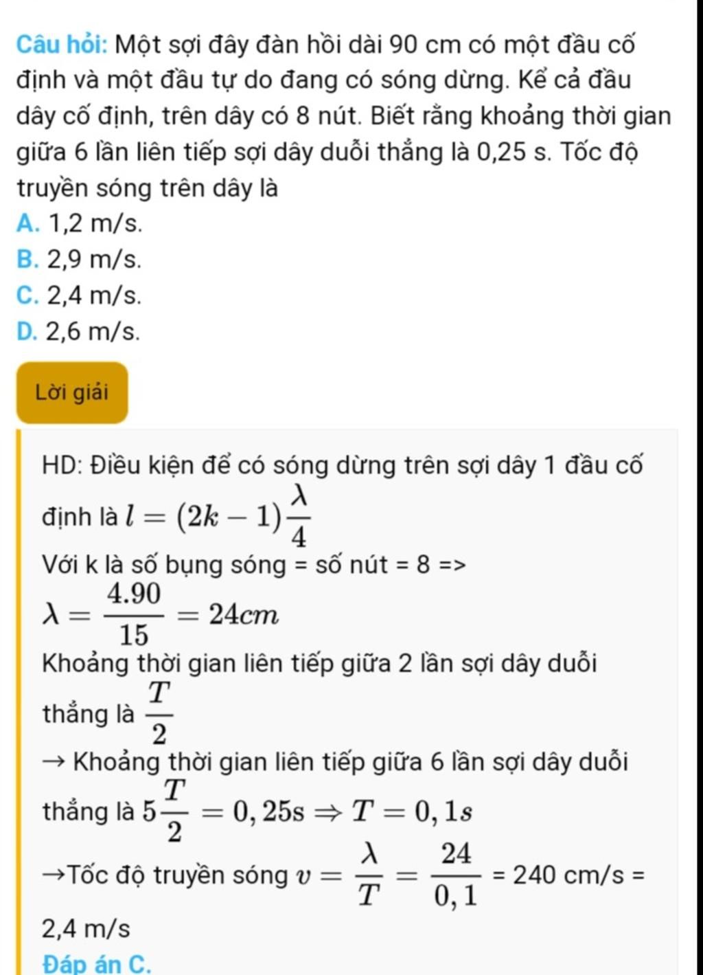 → Khoảng thời gian giữa 6 lần liên tiếp sợi dây duỗi thẳng là: $\dfrac{T}{2}+\dfrac{T}{2}+\dfrac{T}{2}+\dfrac{T}{2}+\dfrac{T}{2}=\dfrac{5T}{2}$
