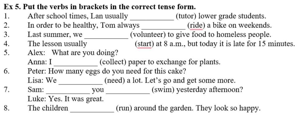 Ex 5. Put the verbs in brackets in the correct tense form.