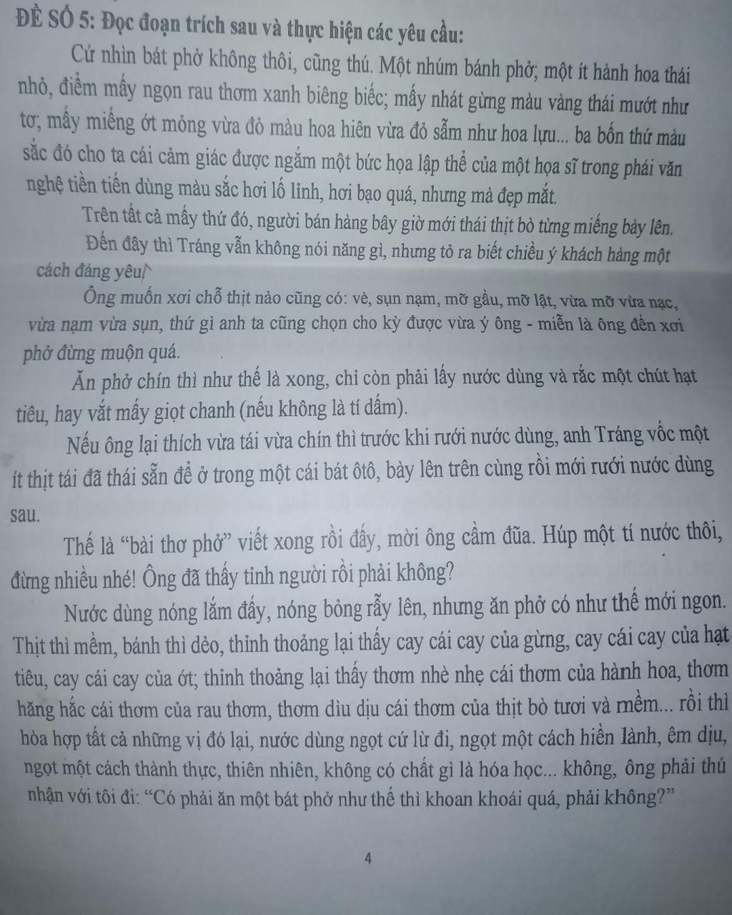 Câu 4 : Phở được tác giả cảm nhận qua những vị nào ?