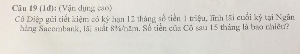 Tổng số tiền sau 1năm3tháng cô Diệp gửi ngân hàng là