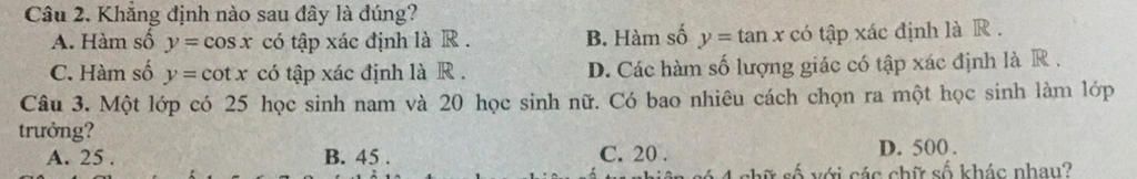 Câu 2. Khẳng định nào sau đây là đúng?