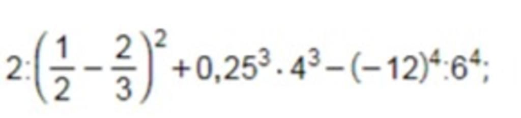 `2:(1/2-2/3)^2+0,25^3 .4^3-(-12)^4:6^4`