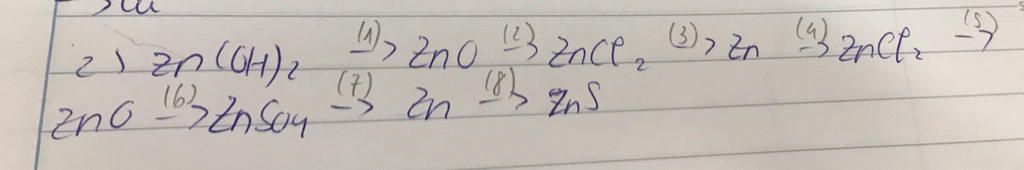 (1)\,Zn{(OH)_2} \to ZnO + {H_2}O\\