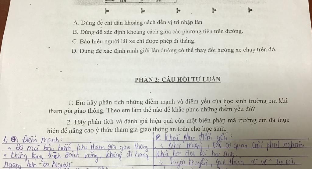 `-` Hiện nay, có rất nhiều em học sinh tham gia giao thông với độ tuổi khác nhau. Chính vì vậy, để tuyên truyền về sự an toàn cho học sinh thì trường của em đã đưa ra một biện pháp rất thiết thực và gây hào hứng cho học sinh đó là cuộc thi thực tế về an toàn giao thông cho học sinh và có thưởng mỗi năm một lần.