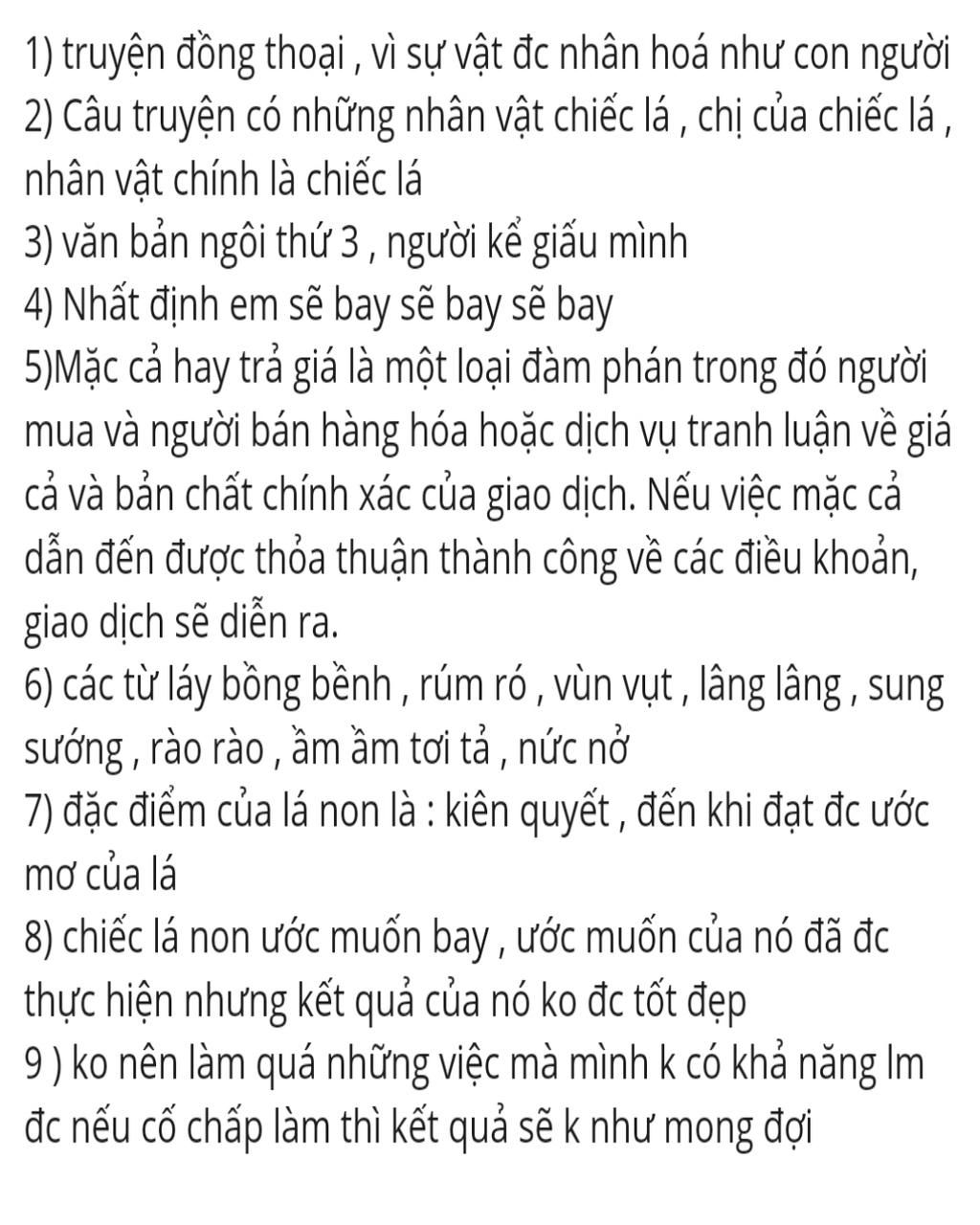 2. truyện có nhũng nhân vật : chiếc lá non, anh chị của chiếc lá non,...