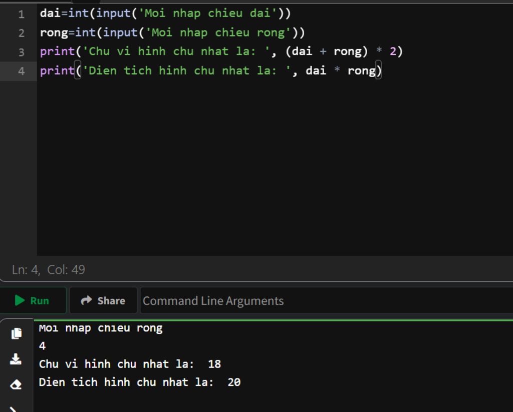 print(f"{a:.2f}, {b:.2f}, {c:.2f} khong la 3 canh tam giac")