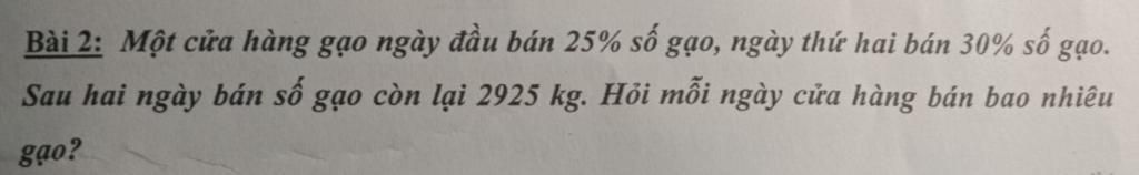 Phần trăm số gạo còn lại sau hai ngày so với tổng số gạo là`:`
