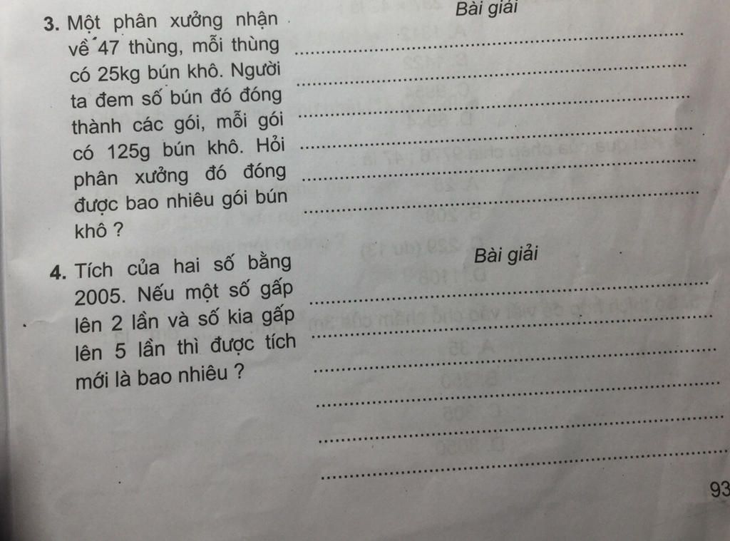 Phận xưởng đó đóng được số bún khô là `:`