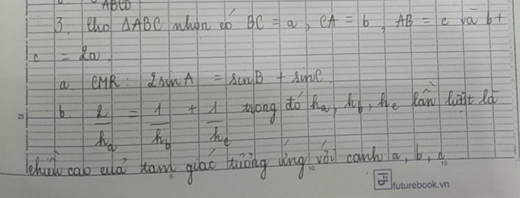 $\Rightarrow \dfrac{2S}{h_b}+\dfrac{2S}{h_c}=\dfrac{2.2S}{h_a}$