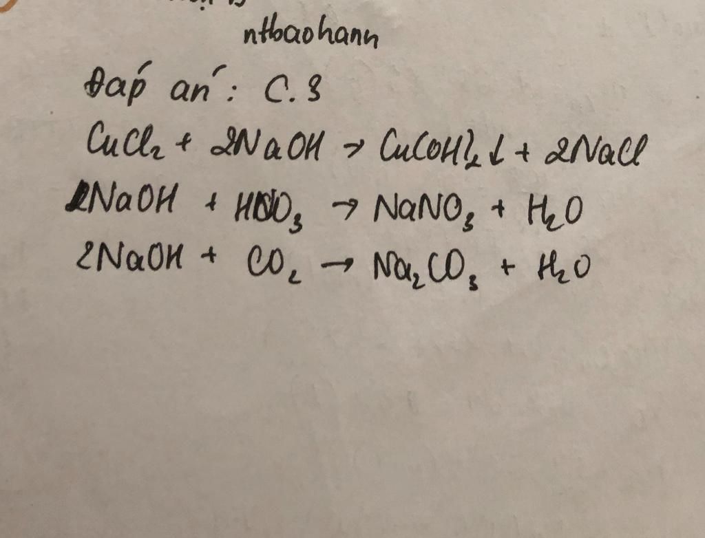 - PTHH: `2NaOH + CO_2` → `Na_2``CO_3 +``H_2``O`
