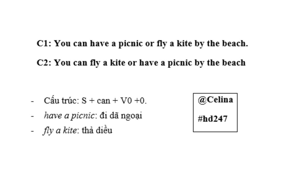 Ghi như này đc ko bạn You can have a picnic or fly kite by the beach