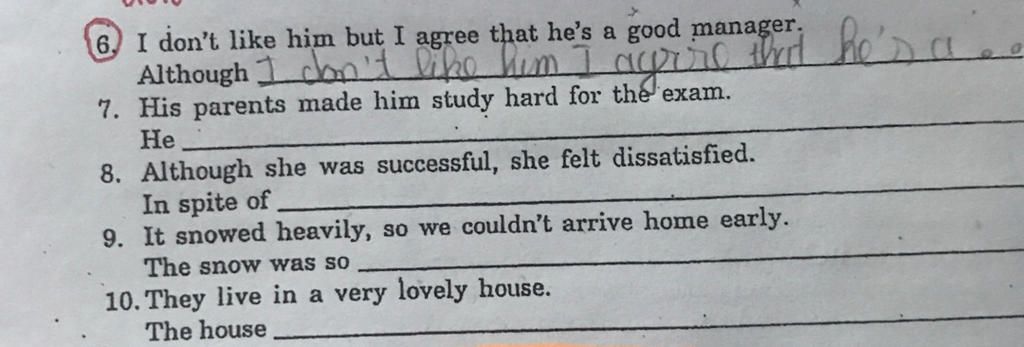 8. In spite of being successful, she felt dissatisfied./In spite of her success, she felt dissatisfied.