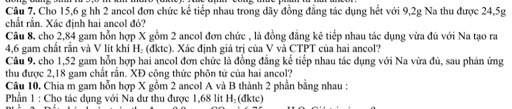 ROH + Na —> RONa + 0,5H2 x……….x……………………0,5x Bảo toàn khối lượng: 2,84 + 23x = 4,6 + 2.0,5x —> x = 0,08 —> V = 22,4.0,5x = 0,896 lít