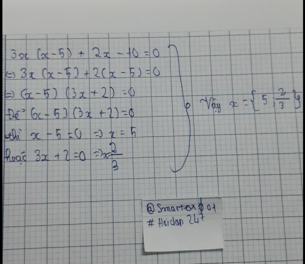 `⇔ 3x(x - 5) + 2(x - 5) = 0`