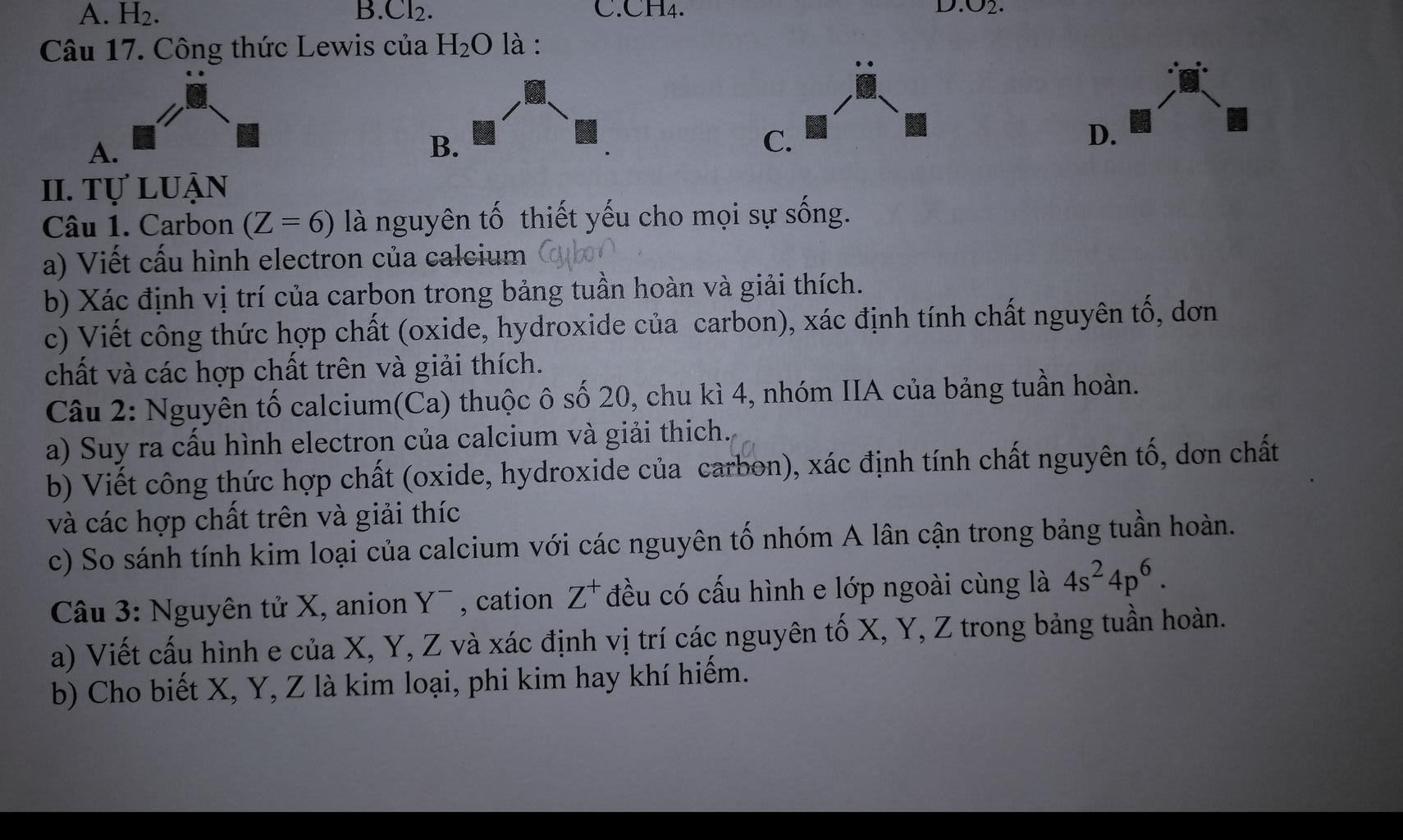 Câu 17. Công thức Lewis của H2O là :