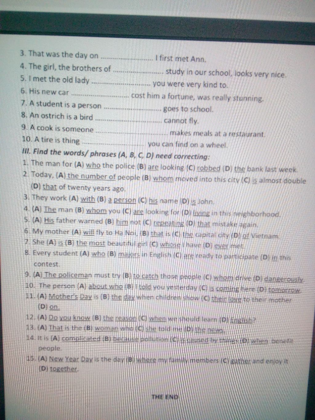 10. A - who → whom
