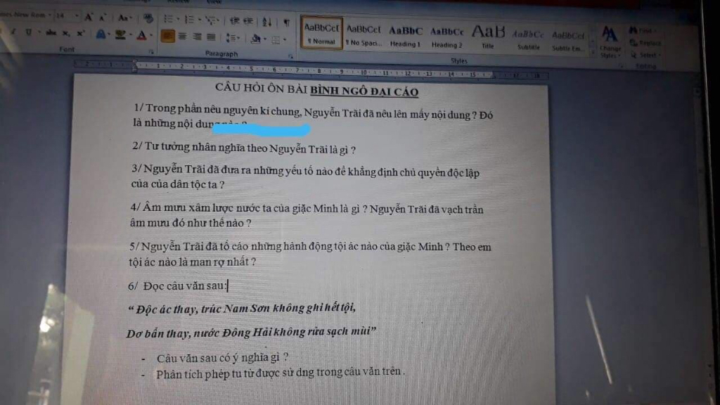 CÂU HỎI ÔN BÀI BÌNH NGÔ ĐẠI CÁO
