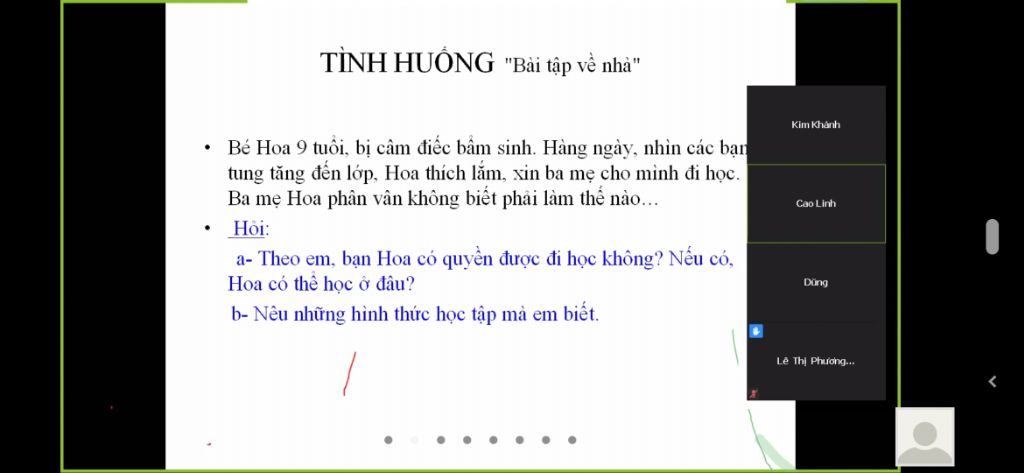 a, hoa có thể đi học.và học ở trường dành cho người bị tật nguyền