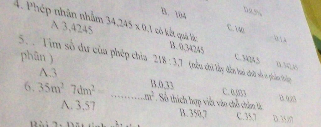 `*`Khi lấy đến `2` chữ số thì được `58,91` thì số dư là `0,033`