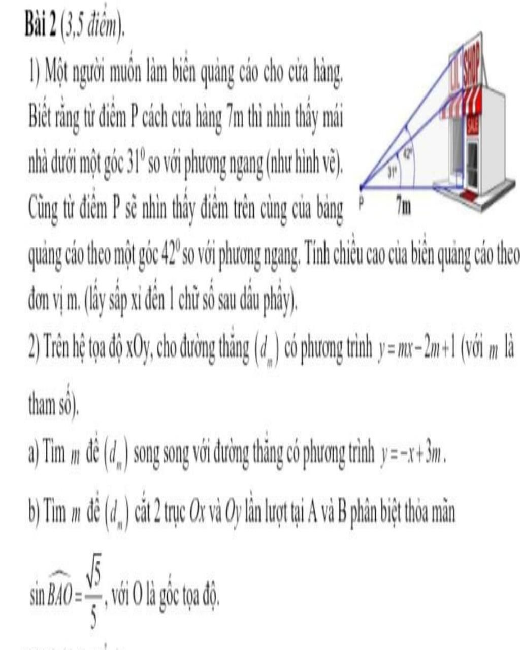 Biết rằng từ điểm P cách cửa hàng 7m thì nhìn thấy mái