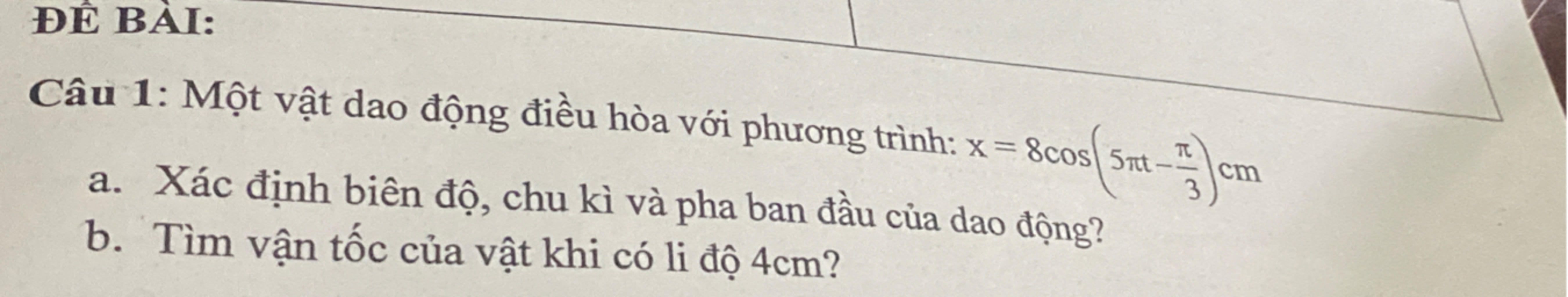 b. Tìm vận tốc của vật khi có li độ 4cm?