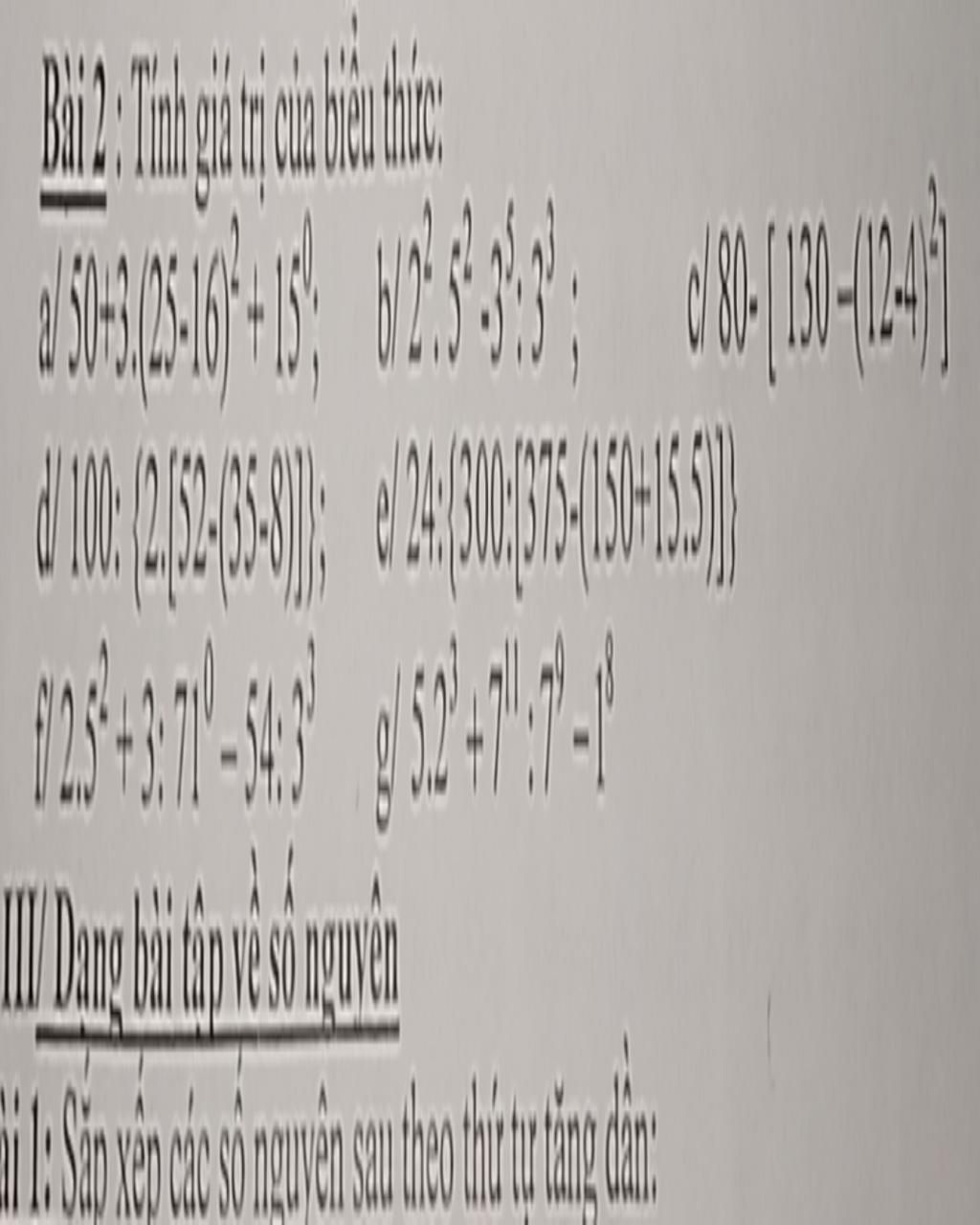f) 2 . 5² + 3 : 71⁰ - 54 : 3³ = 2 . 25 + 3 : 1 - 54 : 27 = 50 + 3 - 2 = 53 - 2 = 51