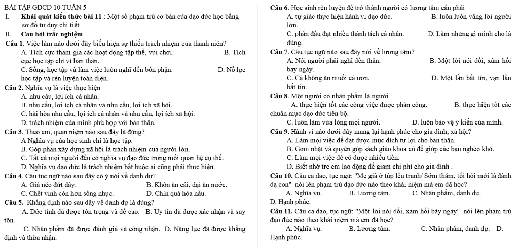Khái quát kiến thức bài 11 : Một số phạm trù cơ bản của đạo đức học bằng