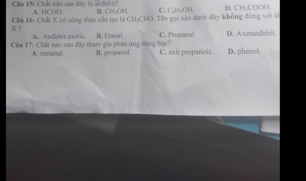 Andehit Axetic, Etanal, Axetandehit đều là CH3CHO