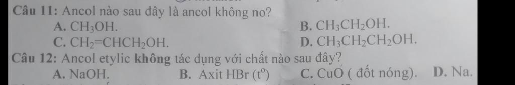 A,B,D có gốc ancol no còn C có gốc ancol không no
