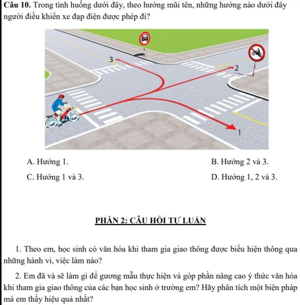 1. Theo em, học sinh có văn hóa khi tham gia giao thông được biểu hiệ ...