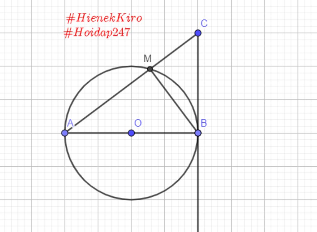 Xét `(O)` có: `hat{AMB}=90^0` (góc nội tiếp chắn nửa đường tròn `(O)`)