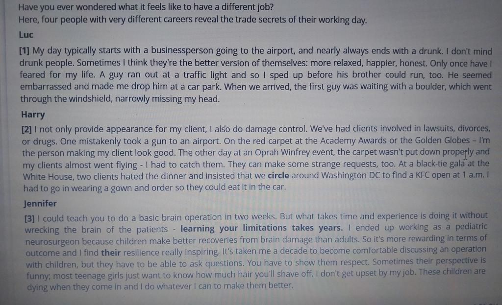 `3.` Dẫn chứng : Đoạn văn của Luc, Harry và Jennifef đều là nhằm mục đích để nâng cao nhận thức về tầm quan trọng của các công việc khác nhau.