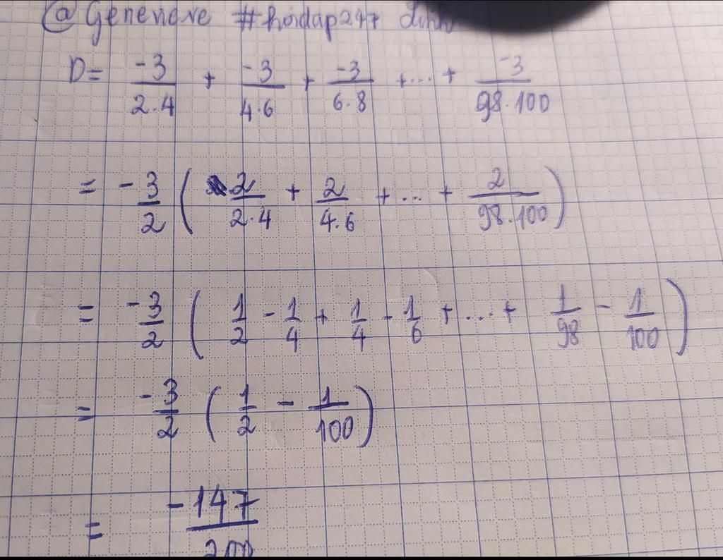 A/3 =1/2X4 + 1/4X6 + 1/6X8 + 1/8X10 +……+ /98X100