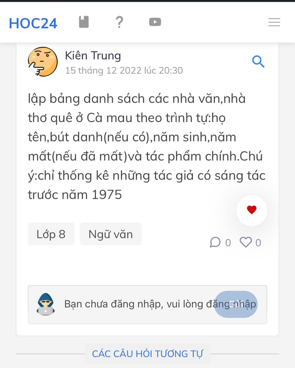 Lập bảng thống kê danh sách nhà văn nhà thơ quê ở cà mau theo trình tự họ tên bút sánh nếu có năm sinh năm mất và tác phẩm chính chú ý trước năm 1975